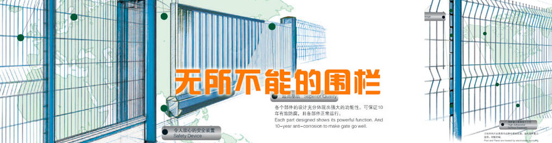 河北思固爾圍欄設(shè)施有限公司致力于專業(yè)的場地防護(hù)產(chǎn)品的研發(fā)與生產(chǎn),為全球客戶提供優(yōu)質(zhì)先進(jìn)的金屬圍欄、全鋼結(jié)構(gòu)大門和其他防護(hù)產(chǎn)品及服務(wù)。思固爾圍欄以一種目前市場上成熟的設(shè)計(jì)理念將立柱與焊網(wǎng)結(jié)合在一起,可以應(yīng)廣大客戶的要求提供理想的解決方案。公司于2002年通過ISO9001質(zhì)量管理體系認(rèn)證;2004年被評為項(xiàng)目建設(shè)先進(jìn)單位,信用優(yōu)良企業(yè),科技進(jìn)步先進(jìn)單位;2006年底公司取得了自營出口權(quán);2006年5月10日思固爾圍欄獲得中華人民共和國國家知識產(chǎn)權(quán)局頒發(fā)的實(shí)用新型專利證書目前,公司產(chǎn)品銷售網(wǎng)絡(luò)已遍及新疆、黑龍江、遼寧、江蘇、內(nèi)蒙古、海南、廣西、廣東、湖南、湖北、上海、福建、浙江、河南、北京等全國各地,并出口至加拿大、烏克蘭、伊朗、新西蘭、泰國、俄羅斯、南非、印度、巴基斯坦、韓國等30多個(gè)國家和地區(qū)。今天的思固爾已發(fā)展成集研發(fā)、設(shè)計(jì)、制造、貿(mào)易為一體的綜合性實(shí)體公司。思固爾人一如既往地秉承之前的創(chuàng)業(yè)精神,引進(jìn)與運(yùn)用現(xiàn)代的管理模式,迎合未來的市場需求,竭力滿足不同客戶的需求,力爭早日把思固爾打造成中國的民族品牌!-----------------------------------------...